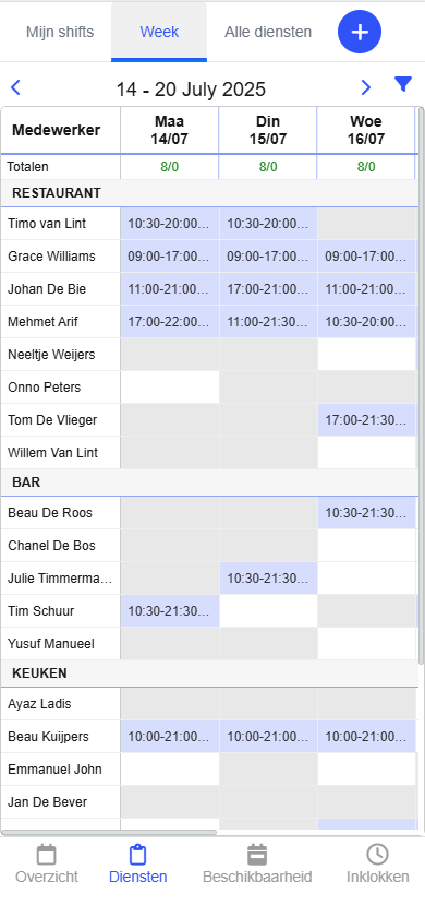 Het moderne planningssysteem dat jouw horeca-bedrijf transformeert. Eenvoudige roosters, automatische planning en complete overzichten voor maximale efficiëntie.